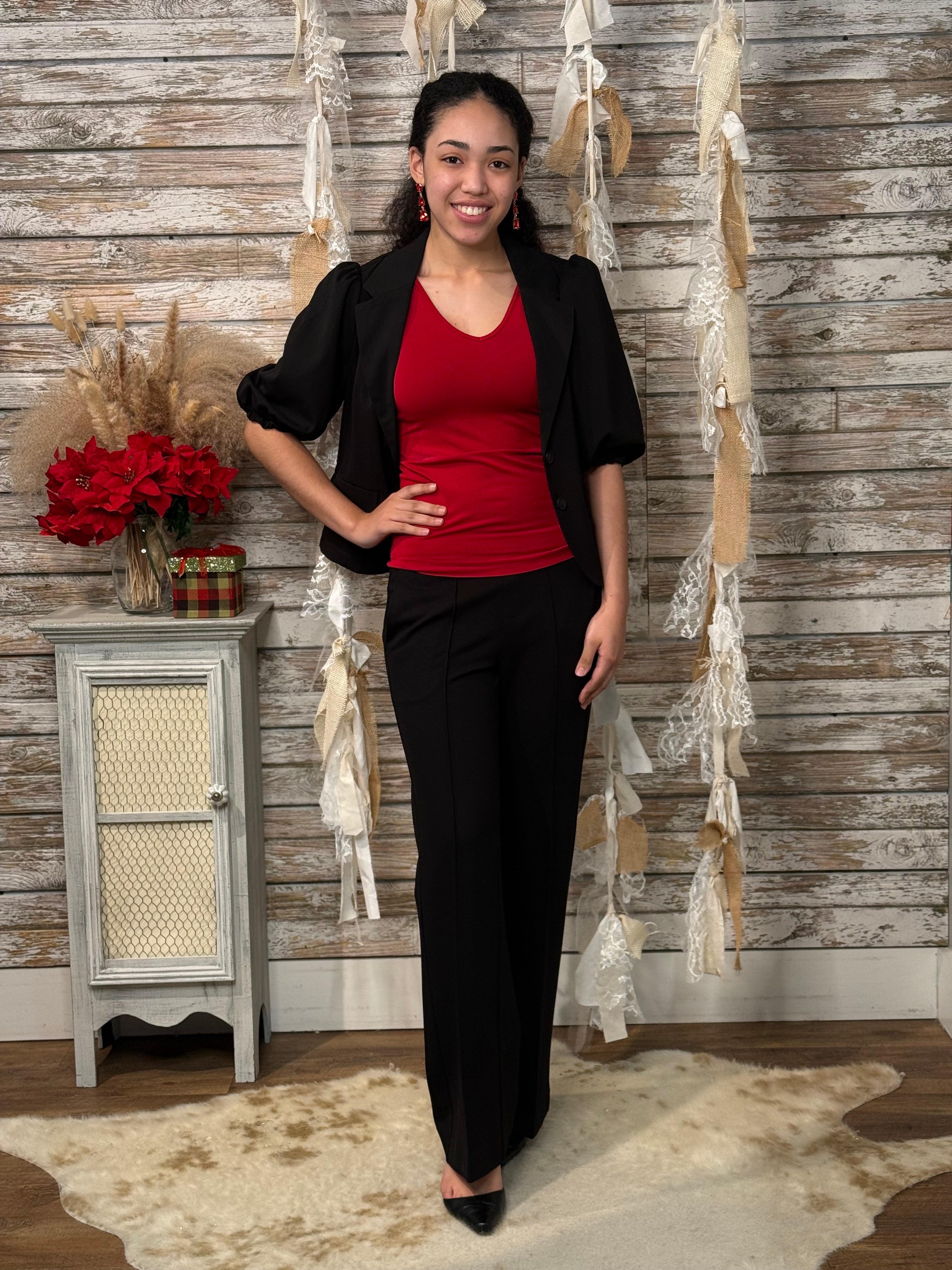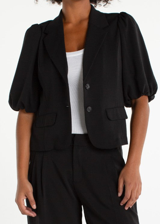 Add instant polish to any outfit with this puff-sleeve cropped blazer. Designed with a tailored silhouette and soft structure, this blazer features short balloon sleeves for a modern, feminine twist on a classic layering piece. The button-front closure and flap pockets keep the look timeless, while the cropped length makes it perfect for pairing with high-waisted trousers, skirts, or denim. Dress it up for work or style it casually for a chic everyday look—this versatile blazer does it all.