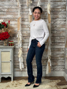 With its simple silhouette and refined details, this long sleeve slub knit top pairs effortlessly with jeans, trousers, or skirts. Dress it up with jewelry or layer it under jackets and cardigans for a chic, versatile outfit.