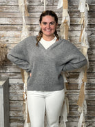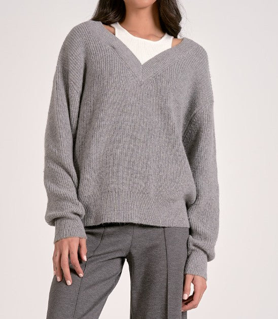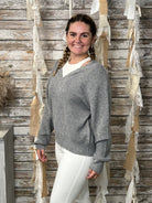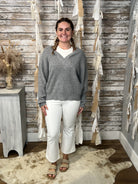 Relaxed, refined, and endlessly wearable—the Cozy Divide V-Neck Sweater is the perfect blend of comfort and modern style. Designed with a slouchy fit and deep V neckline, it layers effortlessly over tanks, tees, or button-downs for that effortlessly chic look. The soft rib-knit texture and dropped shoulders add laid-back ease, while the versatile grey hue makes it a timeless wardrobe staple. Pair it with denim for casual days or tailored trousers for an elevated edge.