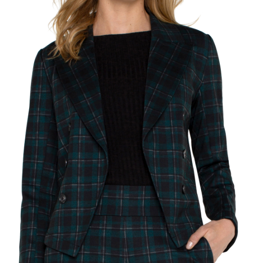 This open front blazer is crafted in our check plaid print. Designed for a modern, sleek look, this blazer features a cropped silhouette that effortlessly complements any outfit 23-1/2" HPS. Notch collar. Long sleeve. Open front. Princess darts. Check plaid knit. Polyester, Rayon.
