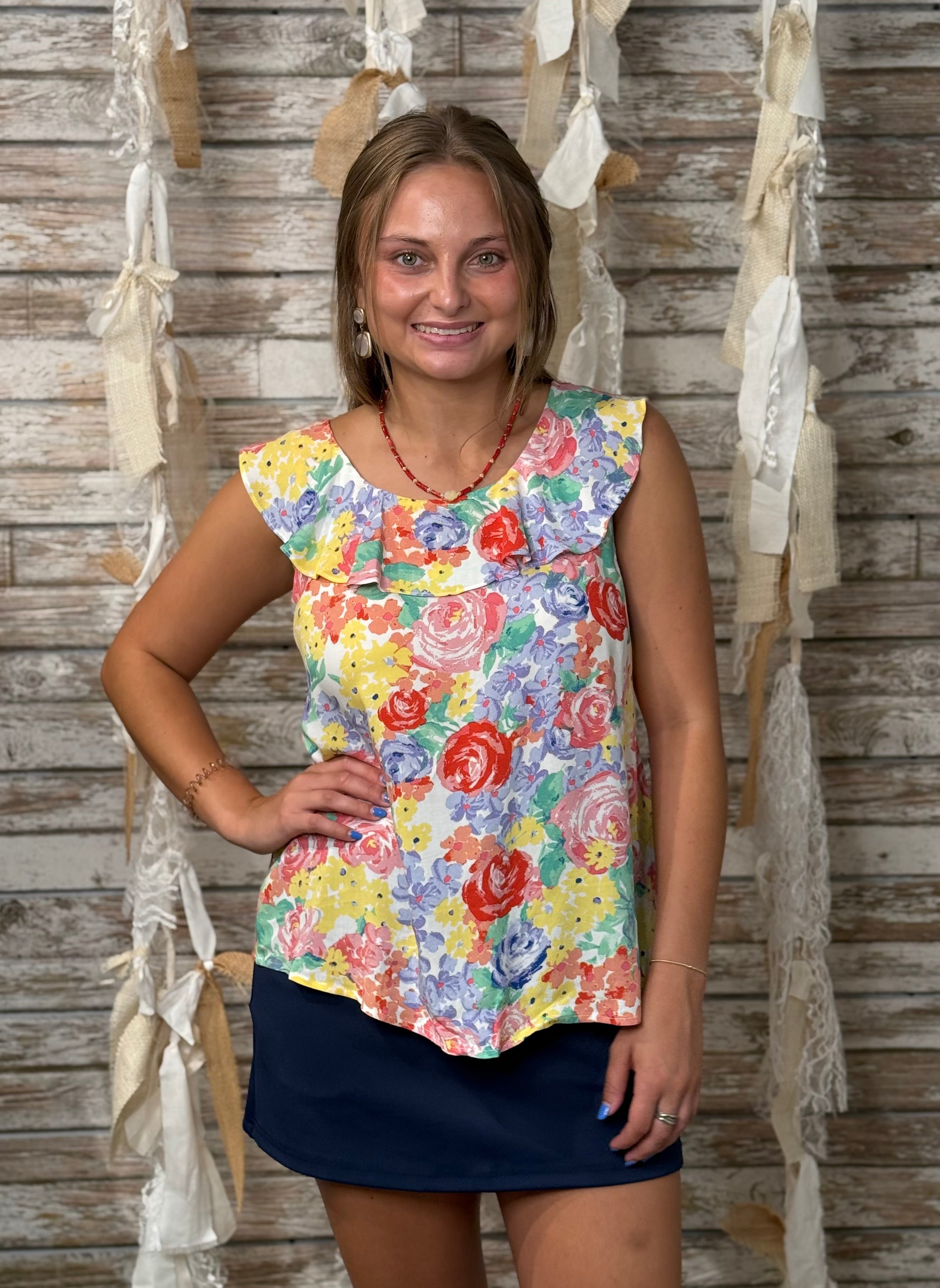 Sweeten up your wardrobe with the Garden Party Bow Top! Featuring a colorful floral print, playful flutter ruffles, and an eye-catching back bow detail, this breezy rayon blouse offers an easy, relaxed fit that's perfect for sunny days, brunch dates, and everything in between.