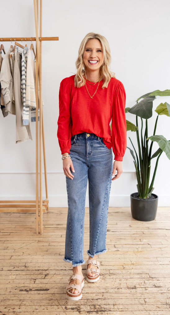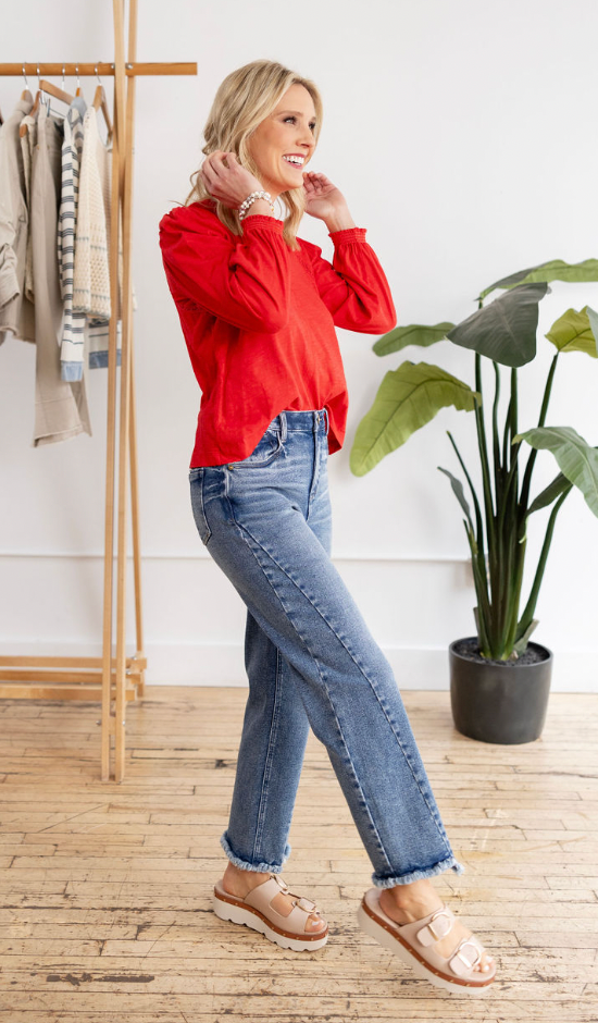 Brighten your wardrobe with this vibrant top that exudes effortless charm. Featuring long puffed sleeves with subtle gathered details and elastic cuffs, this top is as comfortable as it is stylish. The lightweight fabric and relaxed fit make it perfect for layering or wearing on its own. Pair it with your favorite denim for a pop of color that’s versatile for day or evening wear.