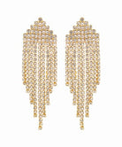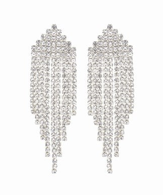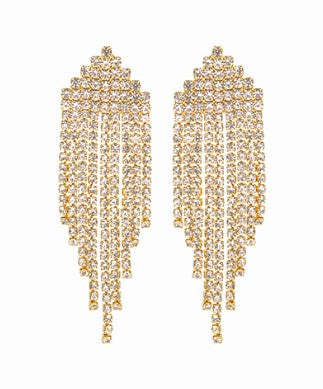 Make a dazzling statement with the Gilded Glimmer Fringe Earrings. Rows of gold or silver-framed crystals cascade in a chic, tapered silhouette, creating a mesmerizing shimmer that dances with every move. Bold yet refined, these fringe-inspired earrings bring just the right amount of drama to your evening look — perfect for cocktail parties, weddings, or any occasion that calls for sparkle and sophistication.