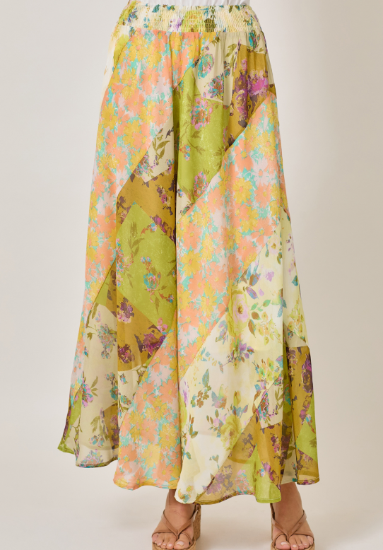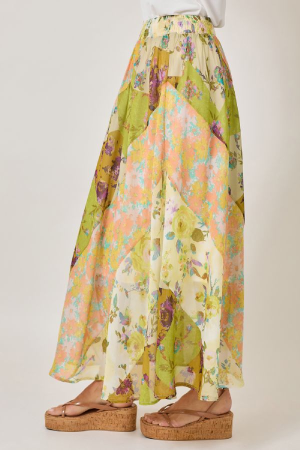 This mixed print skirt provides elegance with the gold lurex lines while keeping it playful and chic.