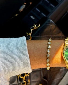 A timeless classic with modern shine—our Golden Glow Tennis Bracelet features bezel-set sparkling stones along a sleek gold chain. Whether worn solo for subtle elegance or layered with your favorite stack, this bracelet adds the perfect touch of everyday luxury. Effortlessly chic, endlessly versatile.