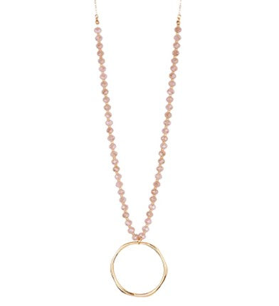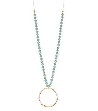 Elevate your everyday with the Golden Orbit Necklace, featuring a strand of shimmering glass beads in soft blush or tranquil seafoam, finished with a hammered gold-tone circle pendant. Long and effortlessly elegant, it’s the perfect piece to layer or wear solo for a touch of polished charm.