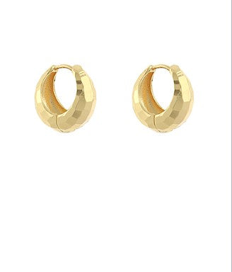 Sleek, simple, and endlessly wearable — the Honeycomb Huggies bring a touch of golden glow to your everyday style. Their subtly faceted, hammered finish catches the light beautifully, giving just the right amount of shimmer while keeping things effortlessly chic.