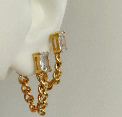 Dare to shine with the Linked Luxe Earrings. Featuring radiant emerald-cut stones set in gold and anchored by chic, chunky chains, these earrings strike the perfect balance between glam and edge. Effortlessly elevating any look, they bring a modern twist to timeless sparkle — perfect for nights out or anytime you want to make a statement.