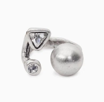Modern mystique meets edgy elegance in the Lunar Alchemy Ring. Crafted in a matte silver-tone finish, this sculptural piece showcases a triangle-cut crystal, a circular accent gem, and a bold metallic orb. With its celestial-inspired design, it's the perfect finishing touch for the boldly unique.