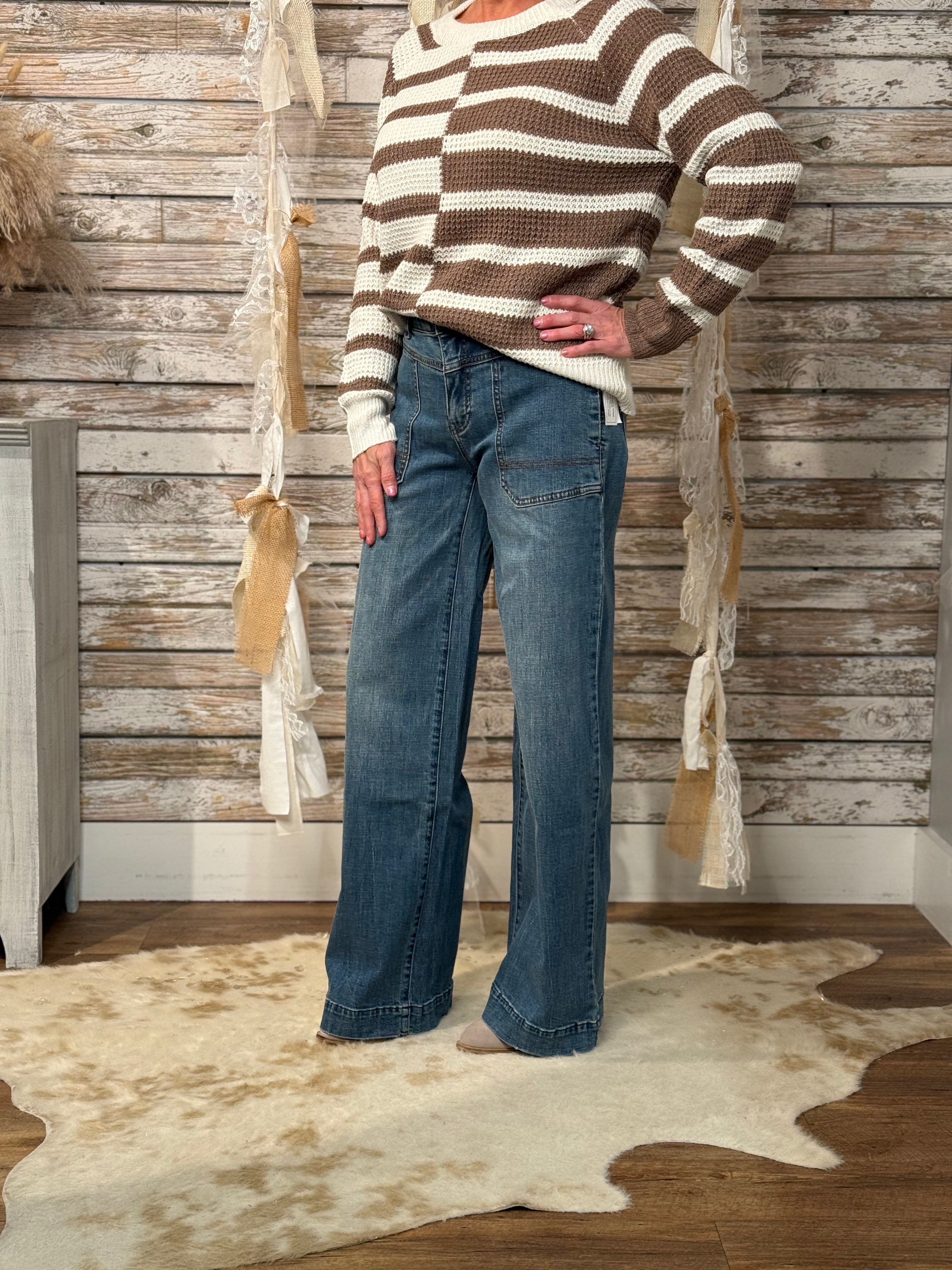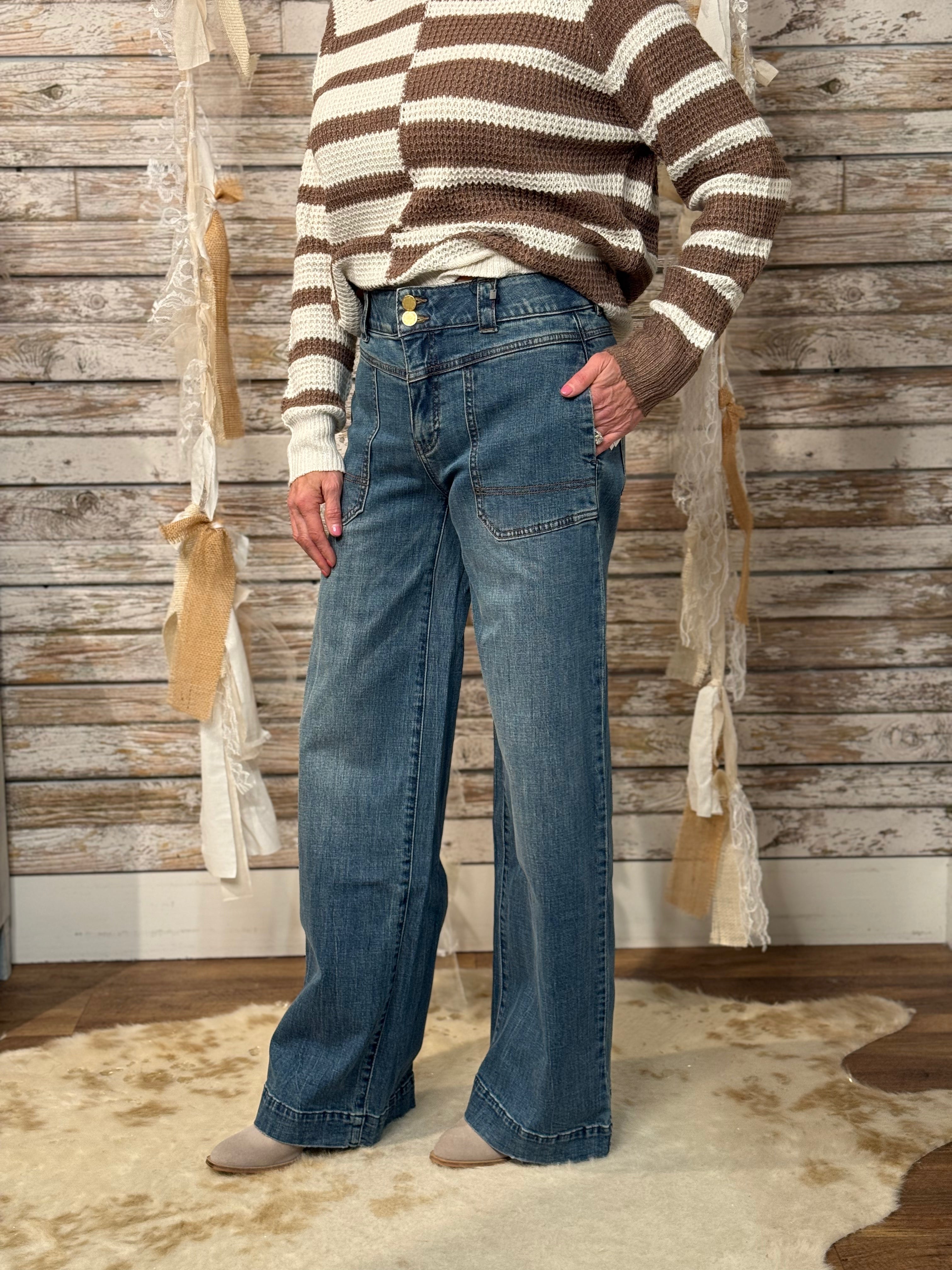 Our Mac and Me Harbor Breeze Wide-Legs combine the comfort of Absolution® fit technology with a flattering high rise (10.5"), V-yoke back, and easy side-entry porkchop pockets. In a soft, light wash with a laid-back drape, they’re the perfect blend of casual cool and all-day wearability.