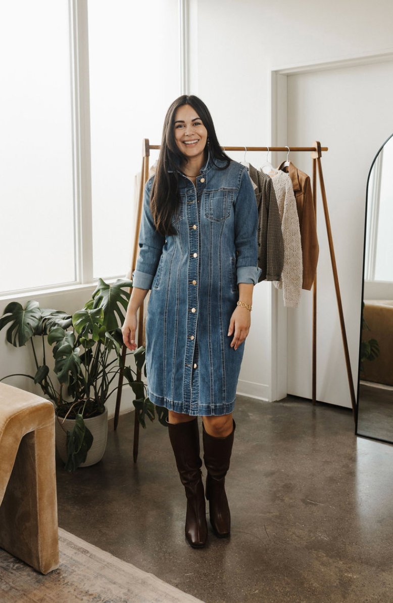 Make a statement with this versatile piece that features a tailored fit, button-down front, and a flattering longline silhouette that can be worn as a dress or a jacket.