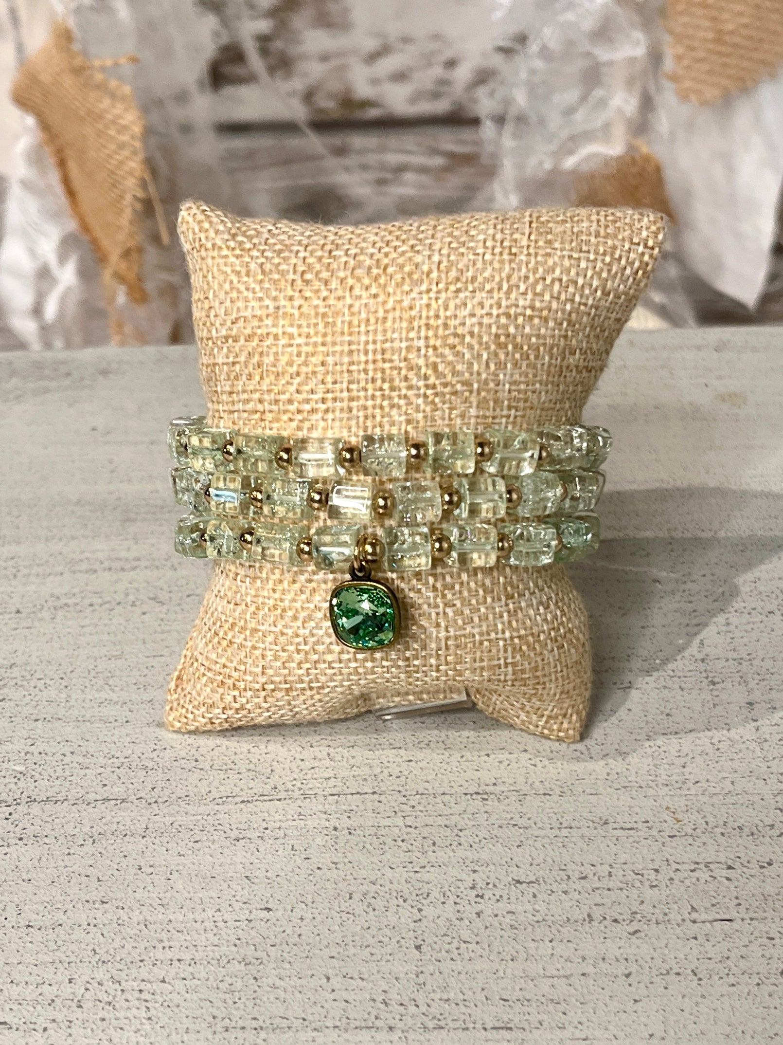 Shimmer with subtle sophistication—our Meadow Glow Crystal Bracelet Set features sparkling square-cut crystal beads paired with luxe Austrian crystal accents. The layered design and soft green hues evoke fresh, earthy vibes, while the single faceted charm adds the perfect focal point. Stack it with your favorites or let it shine solo—either way, it’s pure elegance.