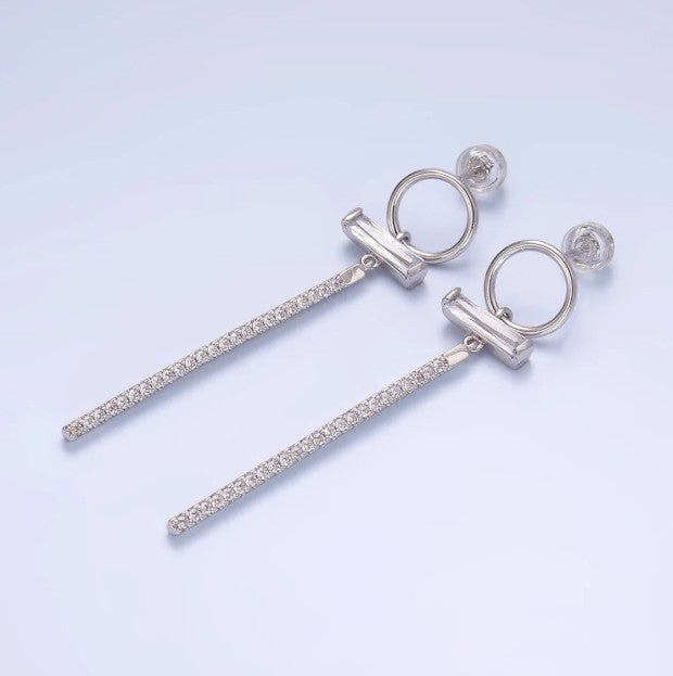 Sleek and striking, the Midnight Tux Earrings serve up vintage glamour with a modern edge. Featuring a polished rhodium finish, sparkling CZ-lined bars, and a timeless toggle-inspired design, these silver stunners add a dash of sophistication to any soirée or night out look.