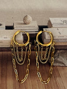 Turn up the drama with The Milo Chain Hoops — bold, gold, and unapologetically chic. These statement earrings feature layered chain drops in mixed textures that create a striking, fashion-forward silhouette. Designed for the confident trendsetter, they bring movement, shine, and attitude to any look — from sleek blazers to casual knits.