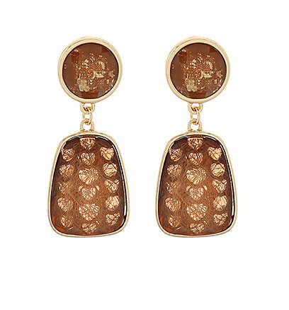 Warm, rich, and effortlessly elegant — the Molten Amber Drops glow with earthy bronze tones and a touch of golden shimmer. The textured resin design catches the light beautifully, framed in sleek gold for a polished finish. Perfect for autumn outfits, evening dinners, or whenever you want a little glow-up moment.