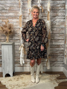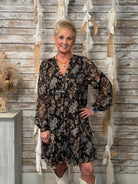 Timeless and effortlessly chic, the Noir Polka Dot Elegance Midi Dress is a closet essential you’ll reach for again and again. Designed in a sleek woven fabric, this classic black floral dress features a flattering midi length that moves with grace and sophistication. Perfect for day-to-night styling, pair it with heels and statement jewelry for an elevated evening look or keep it simple and polished with flats for daytime ease.