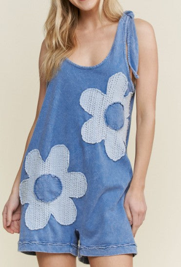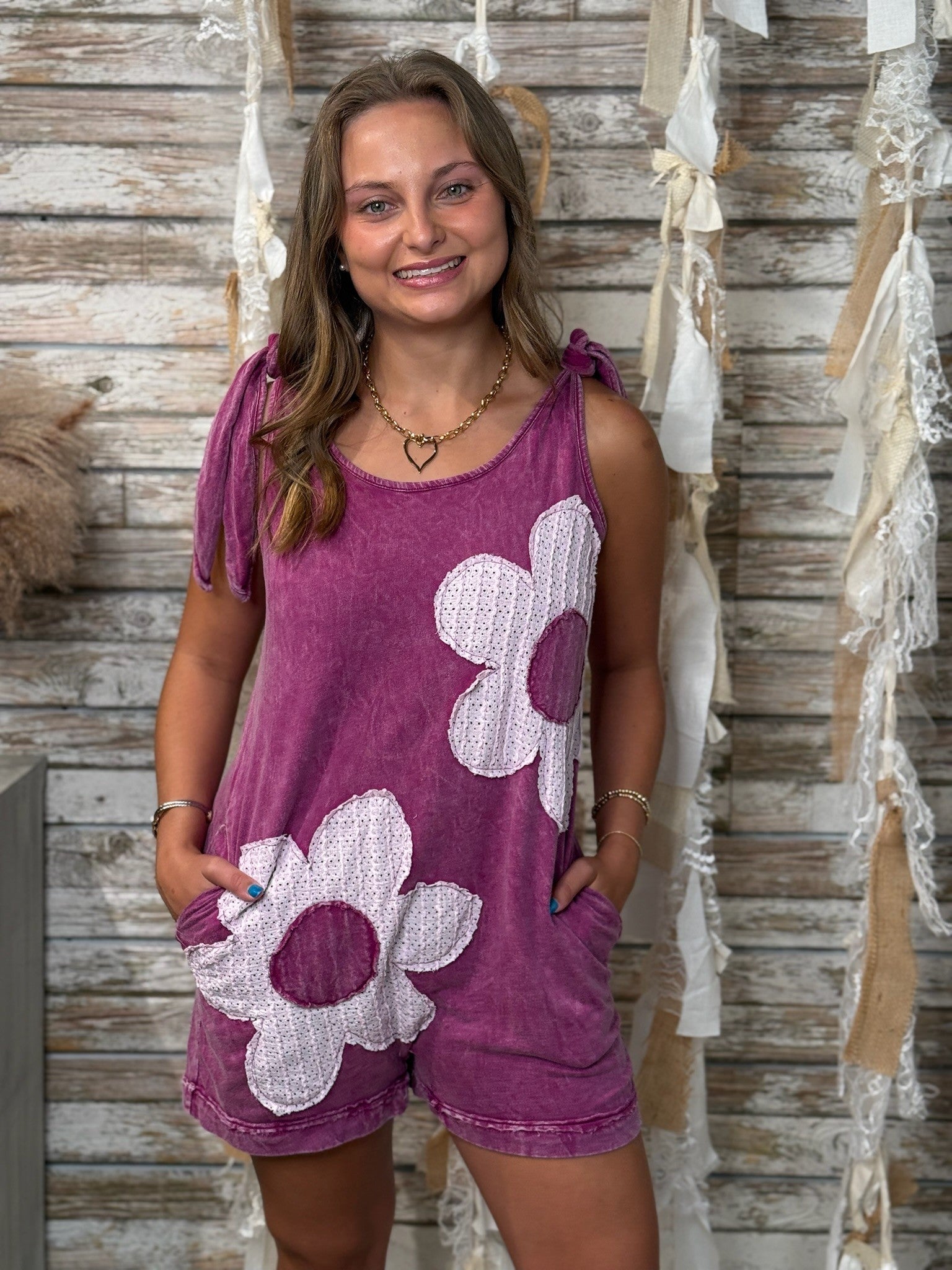 Bloom with ease in our Petal Play Romper! Featuring oversized lace petal flower patches on soft, mineral-washed fabric with an adjustable tie shoulder for the perfect fit. It’s a flirty, free-spirited look that’s made for sunny strolls and weekend adventures.