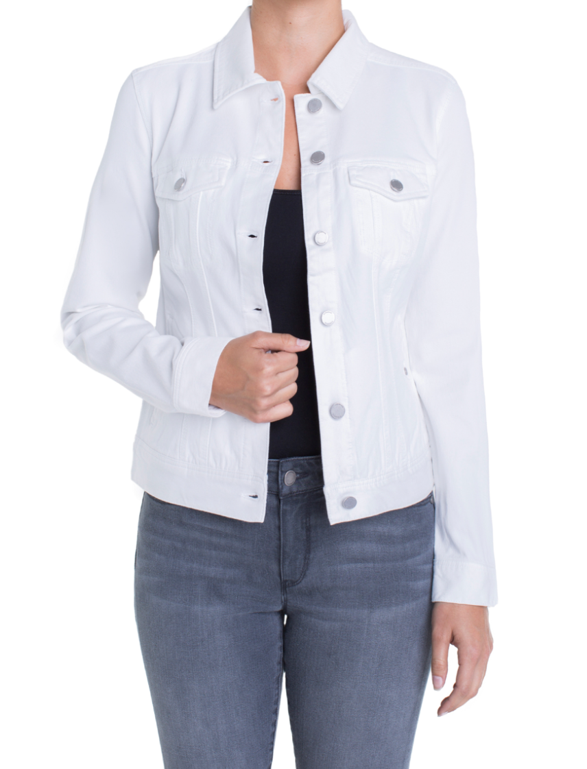 Classic Powerflex Knit Jean jacket with amazing stretch and recovery. Your go-to layering item that adds the perfect touch to any outfit made with comfortable fabric that won’t stretch out! Get the best of both worlds with the style of a denim jacket and the comfort of a knit.