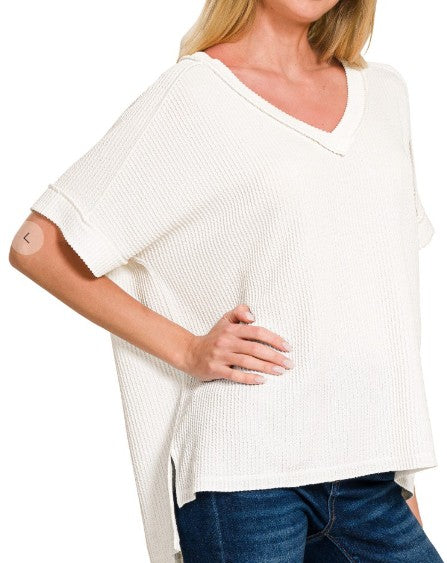 Chic, comfy, and effortlessly stylish—The Savannah is your new everyday essential! Featuring soft corded rib fabric, a flattering V-neck, and a trendy hi-low hem, this top is perfect for dressing up or down. Whether paired with jeans or layered over leggings, it’s the ultimate blend of casual and cool!