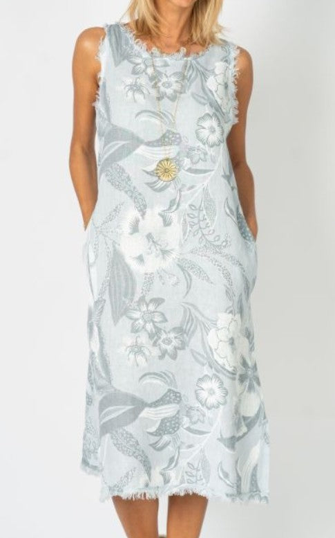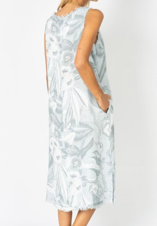 Soft, airy, and effortlessly elegant — the Sea Mist Linen Dress features a delicate floral print on breathable linen with a relaxed silhouette, raw edge trim, and side pockets for laid-back charm. Perfect for beach walks, weekend brunch, or breezy summer days when you want to look polished yet carefree.