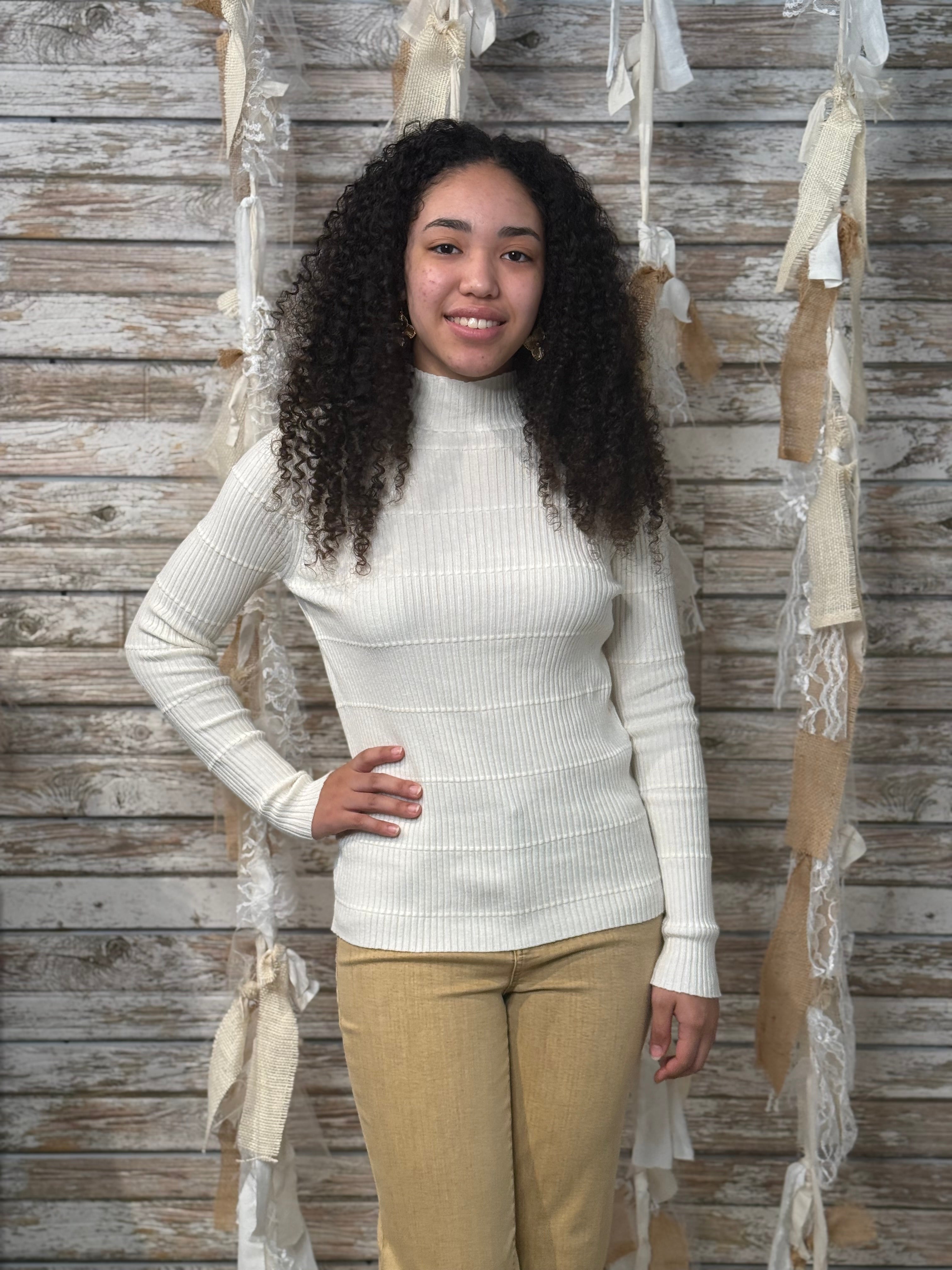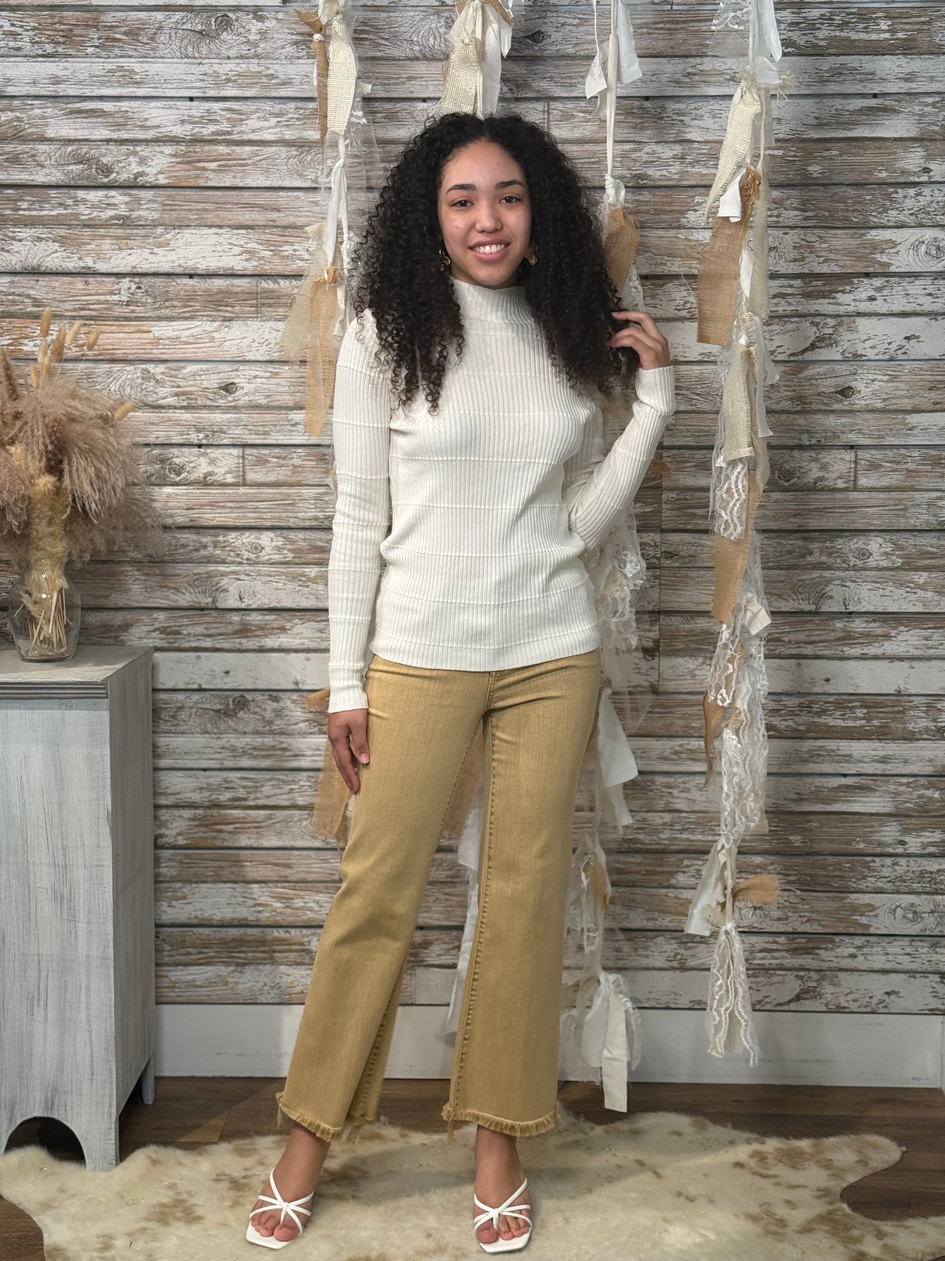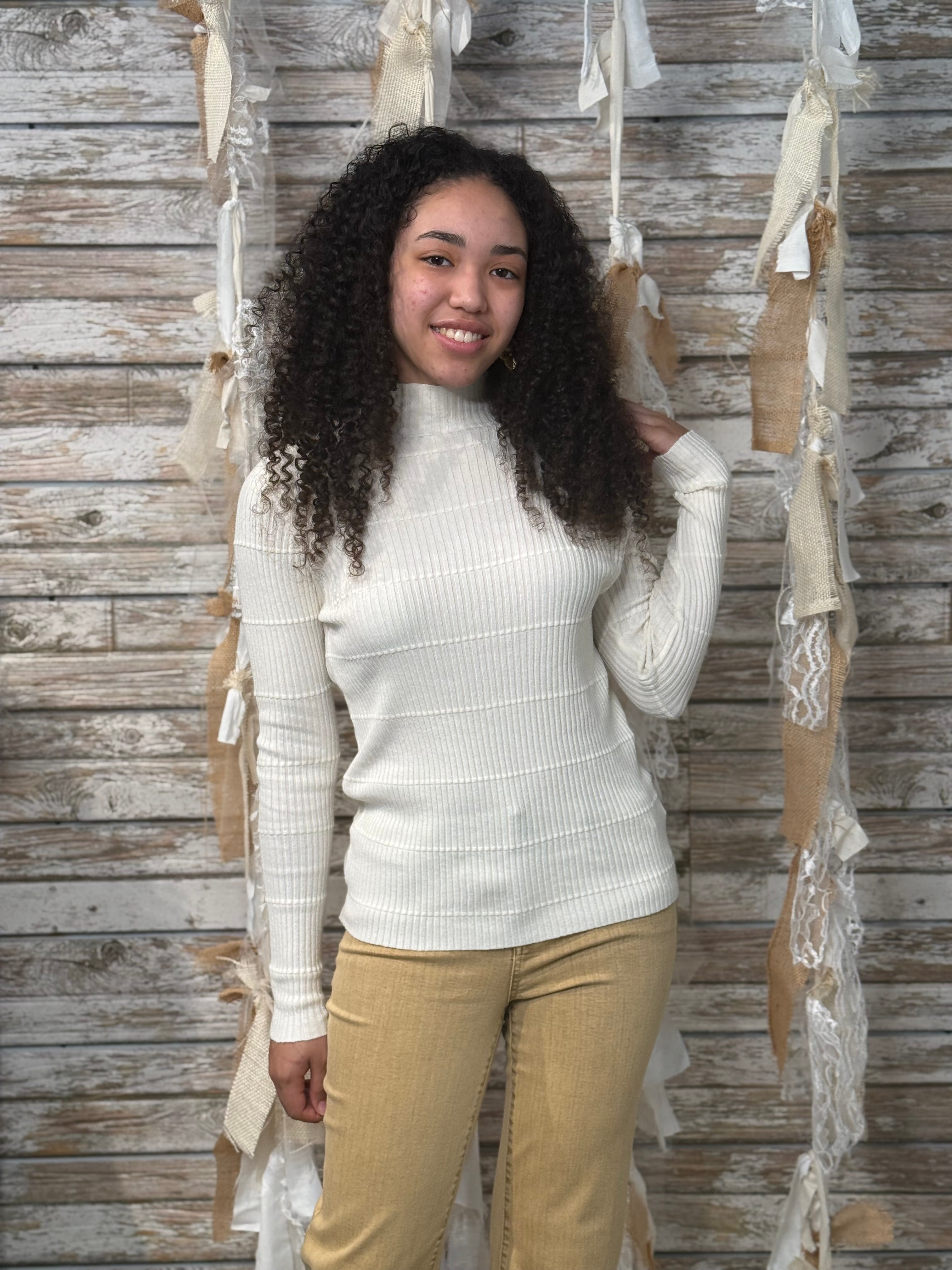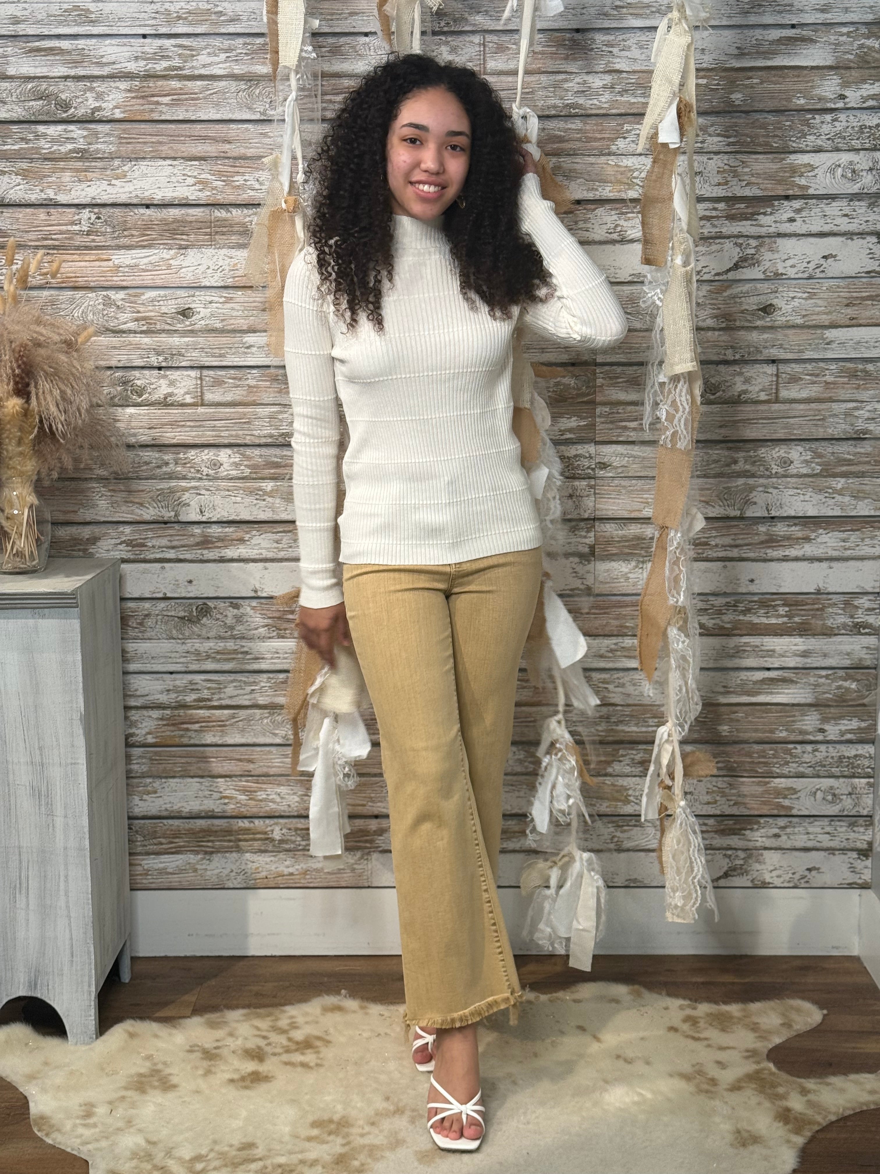 Streamlined and sophisticated, the Sleek Lines Mock Neck Sweater is a fitted essential with a modern twist. Featuring subtle pintuck striping and a flattering silhouette, this solid mock neck is perfect for layering or wearing solo. Its soft stretch knit hugs in all the right places, making it an effortless piece to dress up with trousers or keep casual with denim. A timeless staple your closet will thank you for.