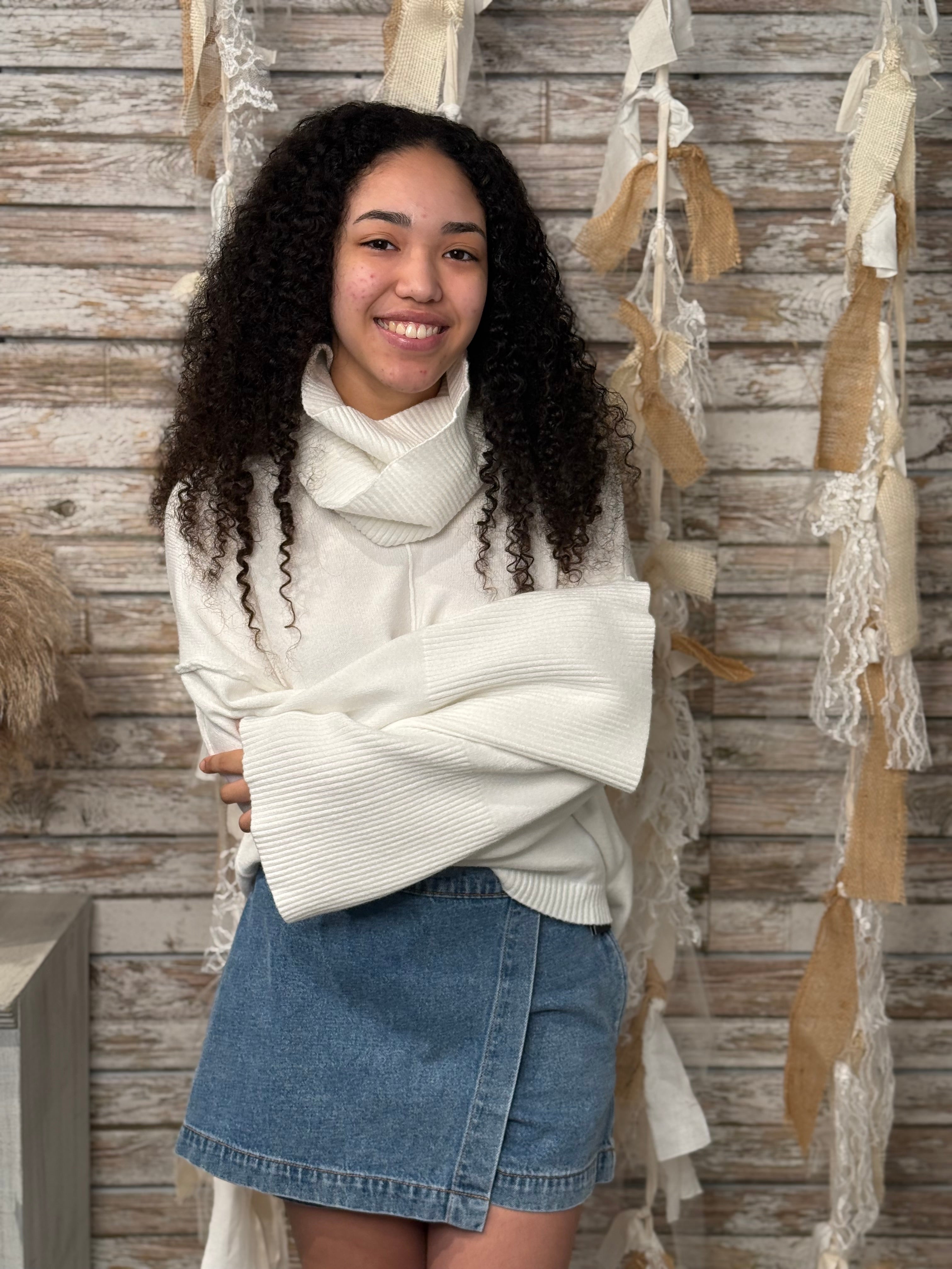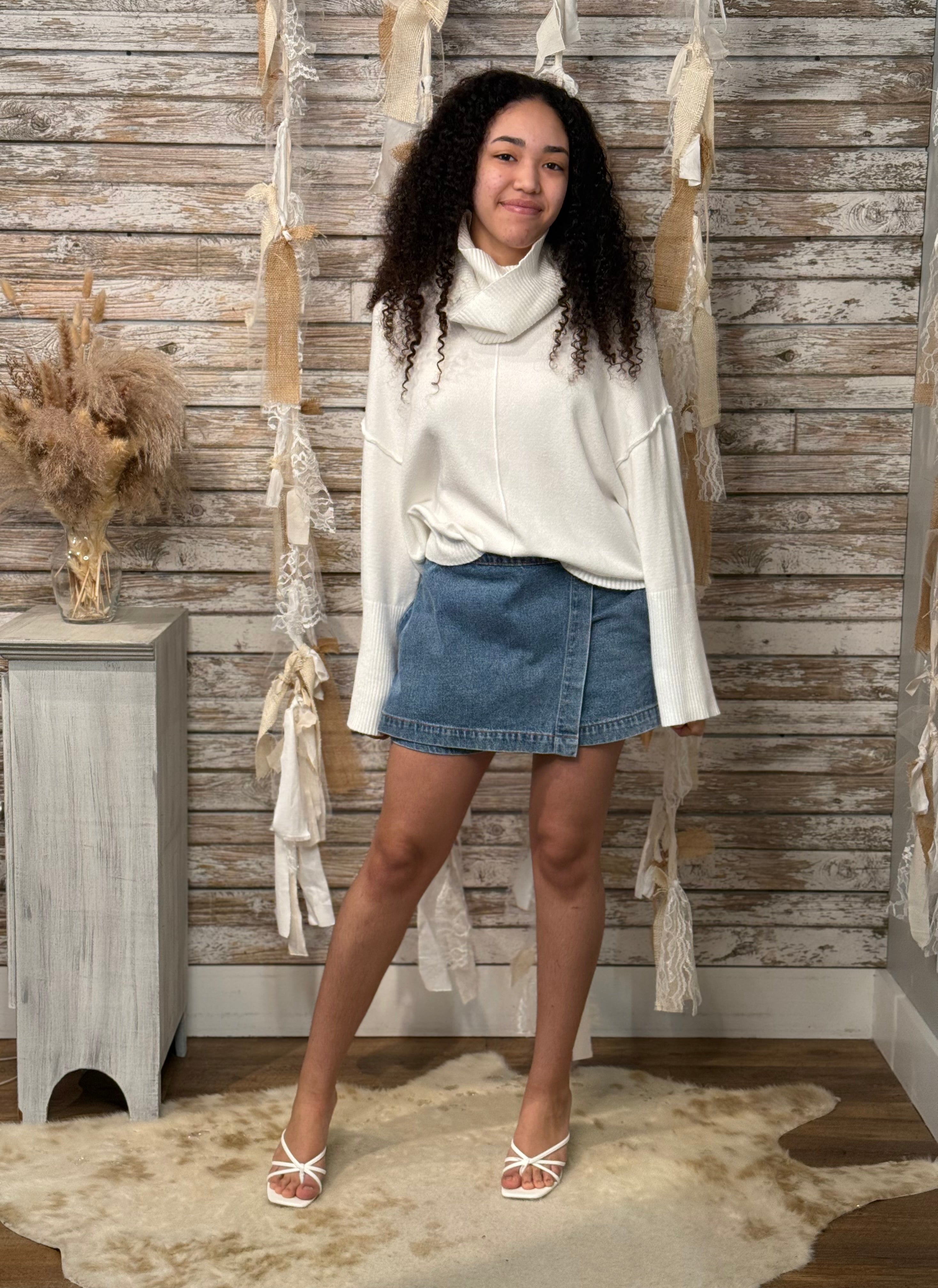 Enjoy effortless style with this Snowfall Rib Sweater with removable cowl neck. Its relaxed fit ensures all-day comfort, while the attached snood adds a fun, playful twist and extra warmth. Perfect for casual days, this versatile sweater keeps you cozy and stylish in one easy-to-wear piece. The