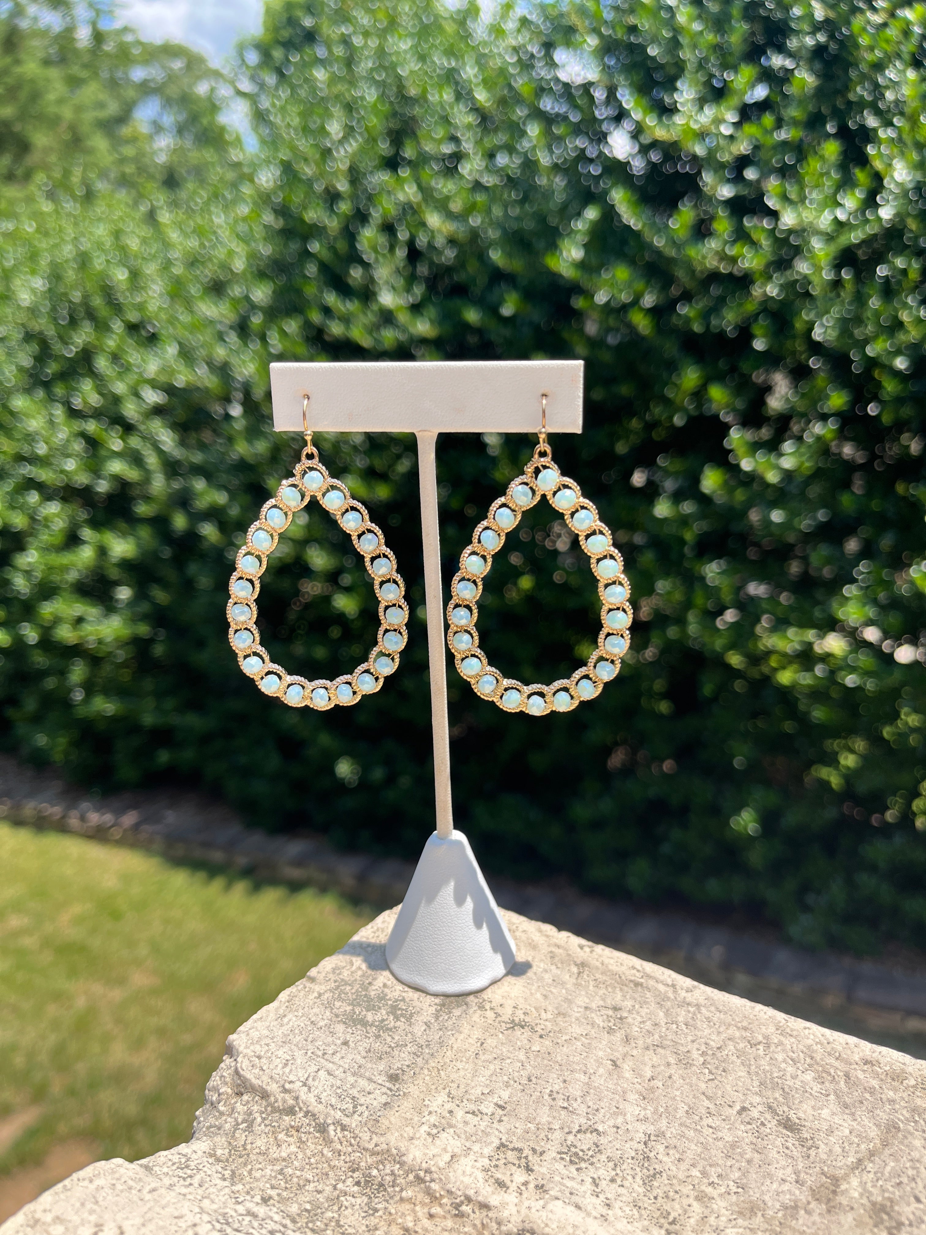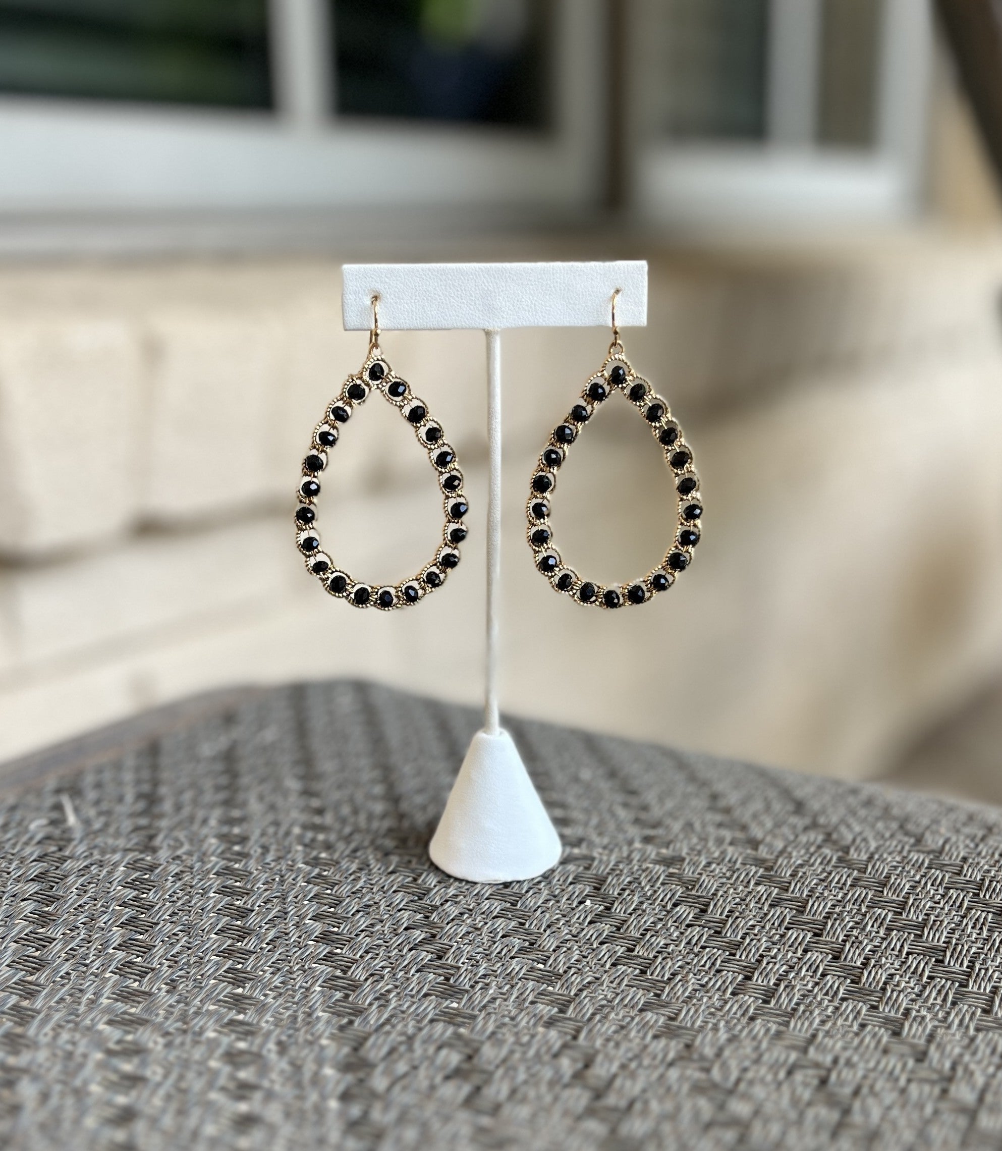 Elegant and eye-catching, these teardrop earrings are lined with shimmering stones—available in dreamy opal or classic black—set in a delicate gold frame. Lightweight with just the right amount of sparkle, they're perfect for adding a polished touch to any outfit, day or night.