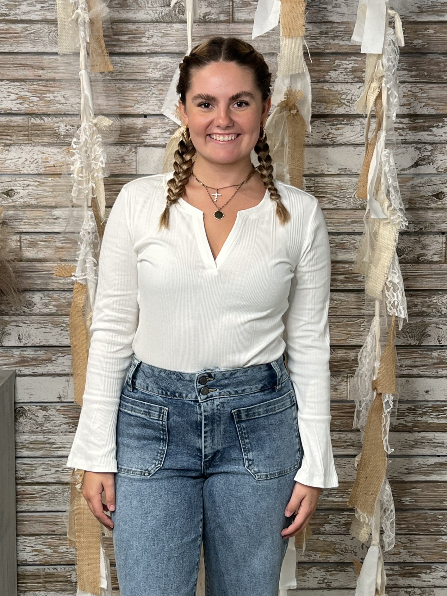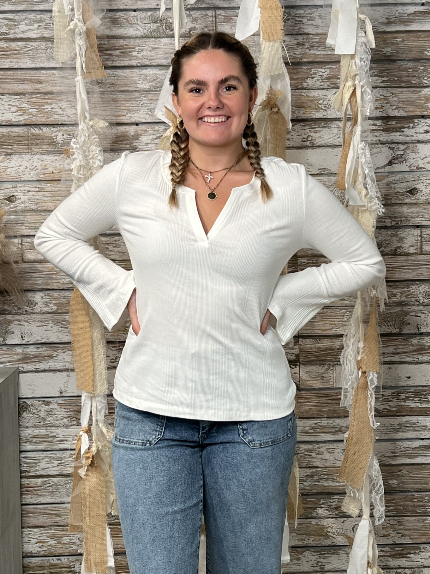 Feminine meets modern in the Whisper Belle Ribbed Top. Crafted with a soft ribbed knit that flatters the figure, this piece stands out with its graceful bell sleeves that add just the right touch of movement and charm. Whether styled with denim for a relaxed chic look or paired with a skirt for a polished finish, it’s a versatile staple that feels effortlessly elevated.