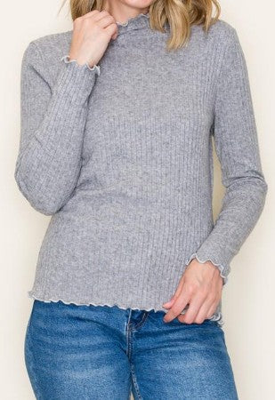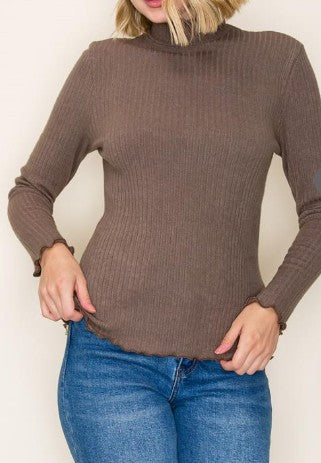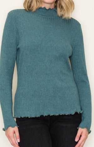 Women’s Ribbed Mock Neck Top – Long Sleeve Lettuce Edge Knit (Multiple Colors)